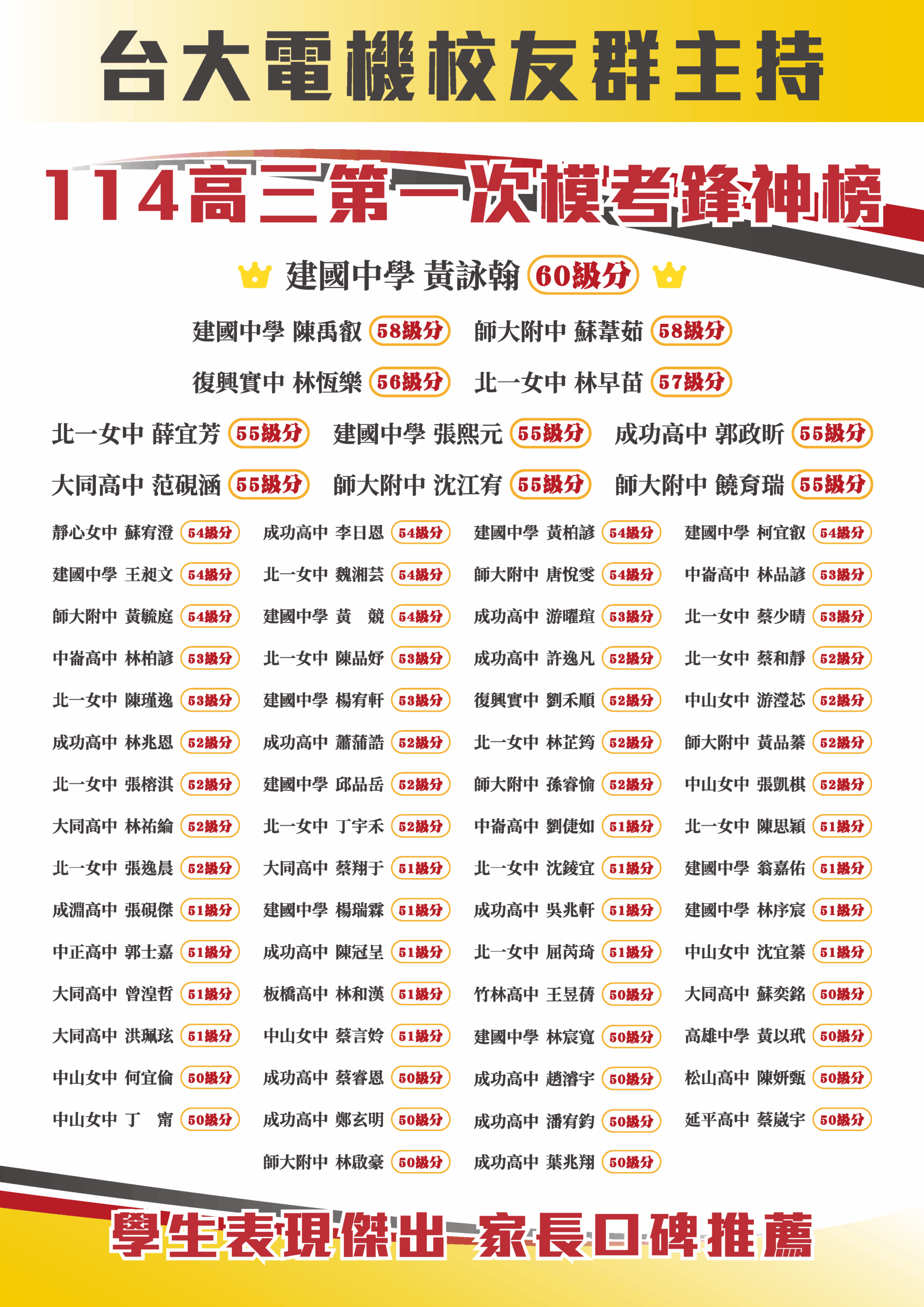 2026學測升學講座最新消息 🔍點我諮詢正式課程 台大電機校友-李鋒老師經驗分享適合高二學生與家長參與 四大主題1.升學制度-繁星.申請.分發2.學測怎麼考?3.準備學測會面臨甚麼挑戰?4.如何幫助高二學生準備學測?(包括2026學測班課程規劃) 報名連結名額有限額滿為止https://www.surveycake.com/s/v4WBe 高二學測倒數一年寒假八天學測模考班製作讀書規劃體驗學測考題掌握大考趨勢 寒訓時間規劃https://www.lfntu.com/2026test/ 教室空間有限 名額限定 2025征戰學測白皮書剖析大考趨勢與準備學測規劃分享給高二學子https://www.lfntu.com/2025withepaper/ 上百位學子經驗分享https://reurl.cc/L6K0Rx